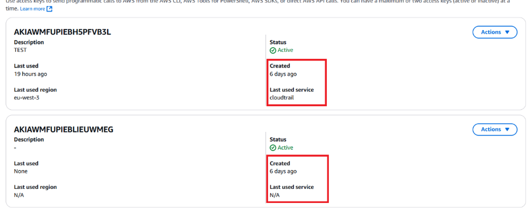 Information d’une clé d’accès et de la dernière utilisation de celle-ci