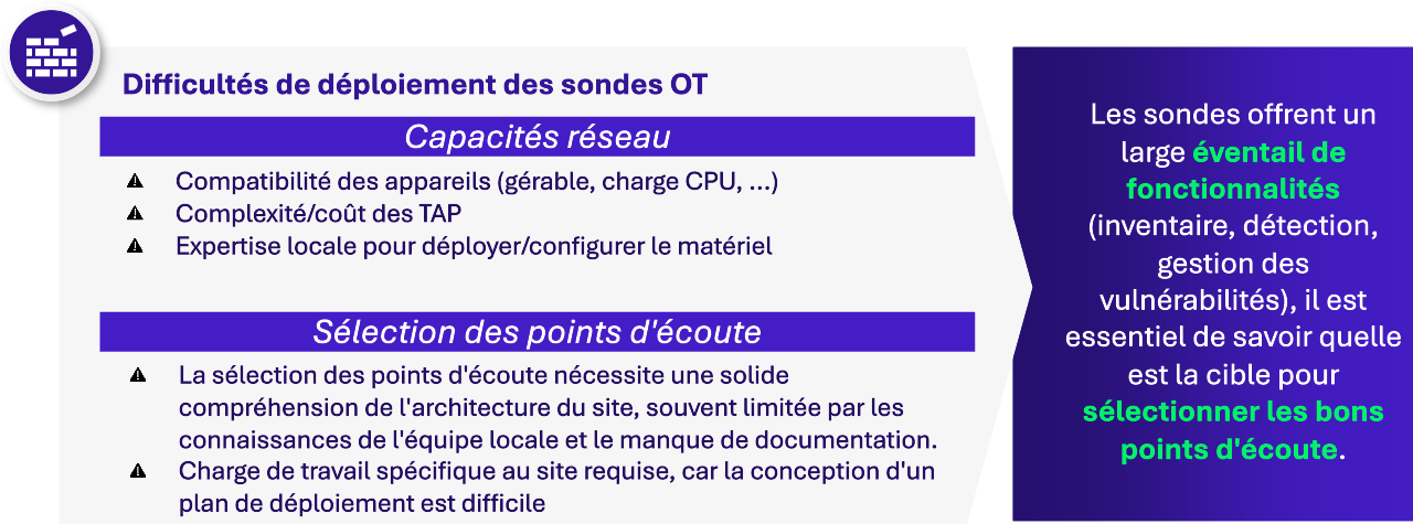 Voici les défis fréquemment rencontrés lors du déploiement des sondes OT :