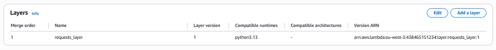 Détail des layers d'un lambda